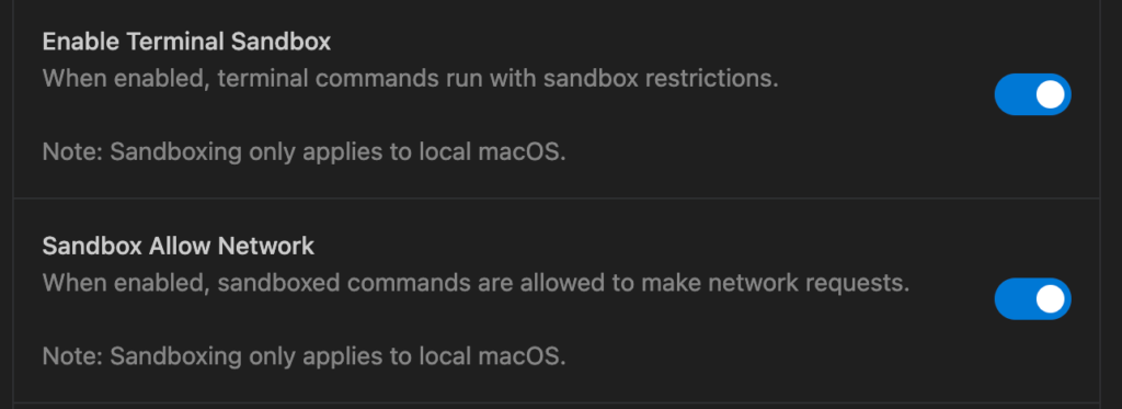 - Automatic Sandboxing: Network access is denied for terminal commands.